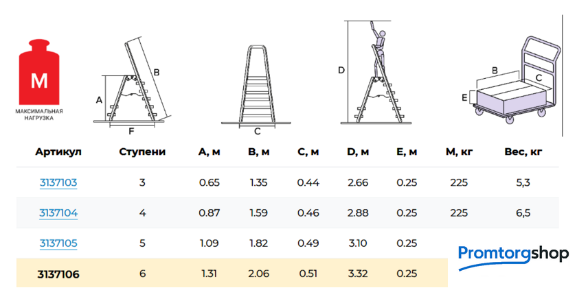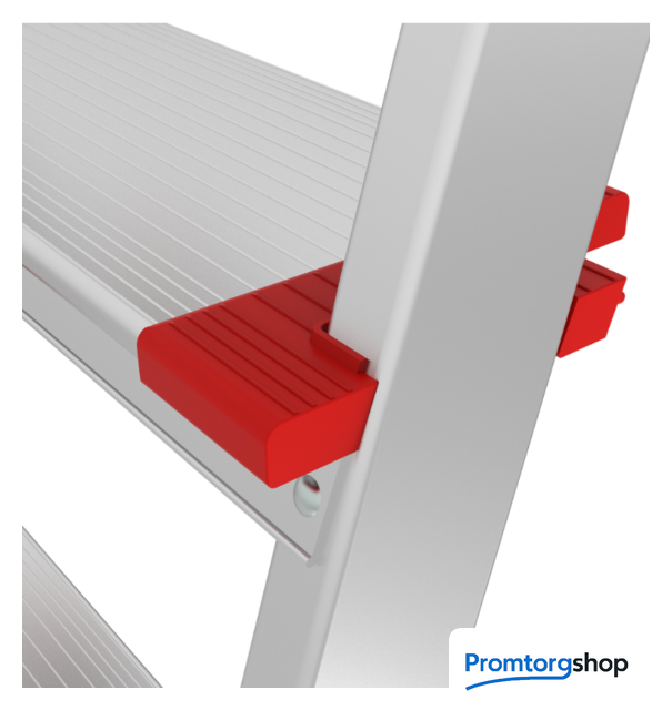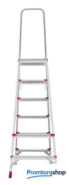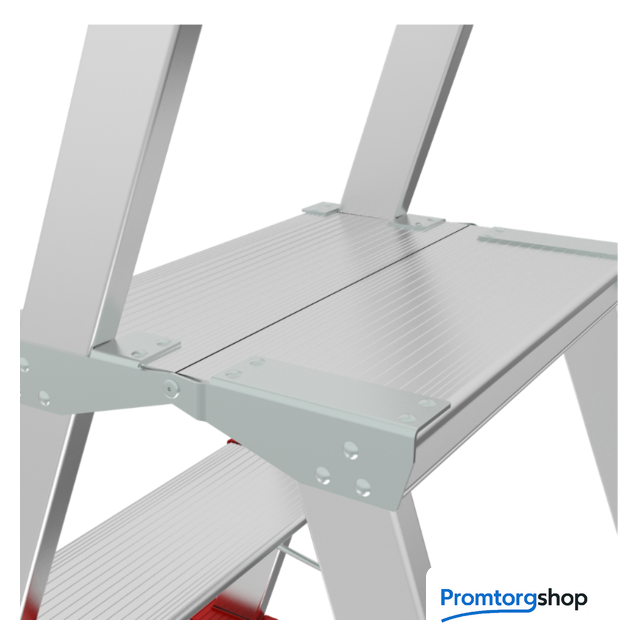 | Тип | лестница-стремянка,складная, неразборная. Профессиональная стремянка для интенсивного использования с широкой складной площадкой, жесткими стяжками и широкими комфортными ступенями. Широкие ступени глубиной 130 мм увеличенной толщины Складная безопасная площадка 260x350 мм c рифлёной поверхностью Высокая прочность и надёжность при небольшом весе изделия Простота установки и высокий уровень комфорта Ступени и стойки из экструдированных алюминиевых профилей увеличенного сечения Рифлёная поверхность ступеней для безопасного подъёма и спуска Прочное крепление ступеней к боковинам шестью стальными заклёпками для более высокой Опорная ступень 80 мм и дополнительная ступень 130 мм для сидения на заднем каркасе Дуга безопасности 600 мм Прочные стяжки из стальной проволоки для надёжной фиксации в рабочем положении Опорные наконечники из прочного пластика для устойчивого положения Компактность при хранении и транспортировке Практичность и внимание к каждой детали гарантируют безопасность работы на любой высоте |