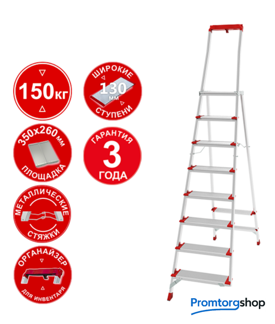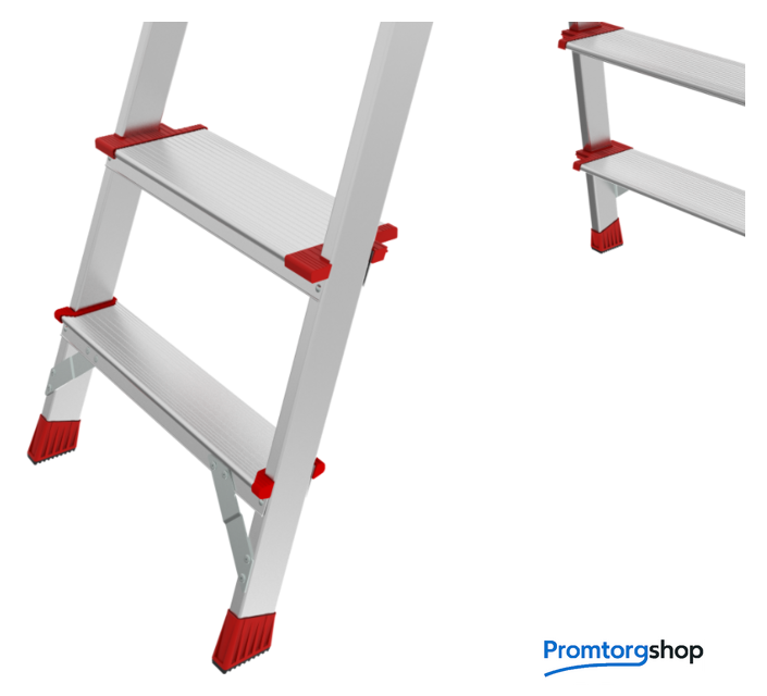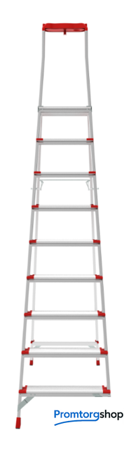 | Тип | лестница-стремянка,складная, неразборная. Профессиональная стремянка для интенсивного использования с широкой складной площадкой, жесткими стяжкам, органайзером и широкими, комфортными ступенями. Широкие ступени глубиной 130 мм увеличенной толщины. Вместительный лоток-органайзер для инструментов и материалов Большая безопасная рифлёная складная площадка 260x350 мм. Ступени и стойки из экструдированных алюминиевых профилей увеличенного сечения. Рифлёная поверхность ступеней для безопасного подъёма и спуска. Прочное крепление ступеней к боковинам шестью стальными заклёпками для высокой устойчивости конструкции. Дополнительная опорная ступень и место для сидения на заднем каркасе. Дуга безопасности 600 мм. Прочные стяжки из стальной проволоки для надёжной фиксации в рабочем положении. Опорные наконечники из прочного пластика для устойчивого положения. Компактность при хранении и транспортировке. Практичность и внимание к каждой детали гарантируют безопасность работы на любой высоте. |