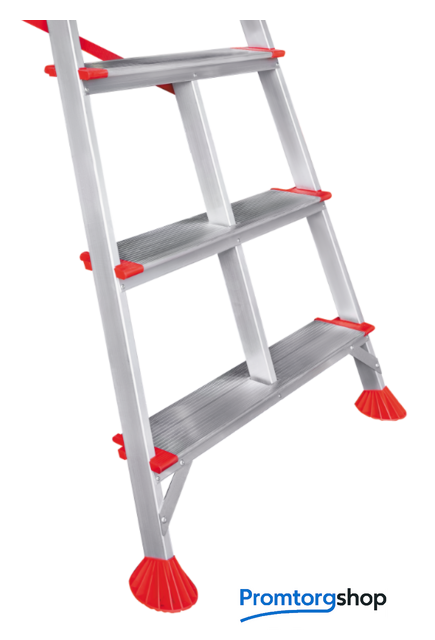 | Тип | лестница-стремянка,складная, неразборная. Профессиональная садовая стремянка с удобным и безопасным доступом к кронам деревьев. Усиленная конструкция для коллективного использования с интенсивными нагрузками. Ноги не устают при длительной работе. Откидная опора со штырём для работы на грунте стабилизирует конструкцию. Усиленный механизм складывания (стальной усилитель). Каждая ступень — рабочая площадка глубиной 130 мм. Меньше усталости при длительной работе. Дополнительный профиль усиления ступеней повышает прочность конструкции. Заклёпочное крепление ступеней. Высокая статическая и динамическая прочность. Пластиковые повторяющие рельеф заглушки ступеней с длительным сроком службы скрывают острые кромки. Закруглённые безопасные края ступеней смягчают контакт с голенью, предотвращают травмы. Распорки-стабилизаторы под нижней ступенью создают жёсткую рамную конструкцию. Погодоустойчивый страховочный ремень с вшитой стальной крепёжной петлей. Не гниёт и не выгорает. Стопорные кронштейны для фиксации сложенных секций в транспортном положении. Башмаки из прочного пластика с увеличенной опорной поверхностью не продавливаются в грунт. |
