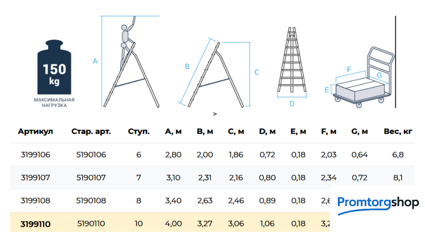 | Максимальная нагрузка | 150 кг |
