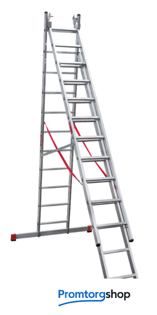 | Тип | лестница-стремянка. Профессиональная лестница для ежедневного использования «5 в 1»: приставная лестница, приставная выдвижная двухсекционная лестница, приставная выдвижная трехсекционная лестница, двухсторонняя стремянка, стремянка с выдвижной секцией Ширина верхней секции - 400 мм, ширина нижней секции - 525 мм Рифлёные перекладины 28x28 мм для надёжного сцепления Направляющие кронштейны из пресованного алюминевого сплава для надежного удержания выдвижной секции во всех рабочих положениях Рифлёные ступени с шагом 260 мм для безопасного подъёма и спуска Надёжно закреплённые на стойках и траверсе опорные наконечники из двухкомпонентного пластика: жесткий компонент отвечает за надежность крепления, мягкий препятствует скольжению лестницы Широкая поперечная траверса 1210 мм для повышения устойчивости Многократная развальцовка в соединении ступеней со стойками для высокой прочности и долговечности Стойки и ступени изготовлены из прессованного алюминиевого профиля Алюминиевые зацепы с автоматическим фиксатором |