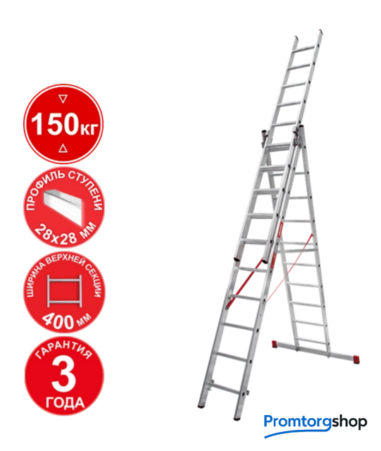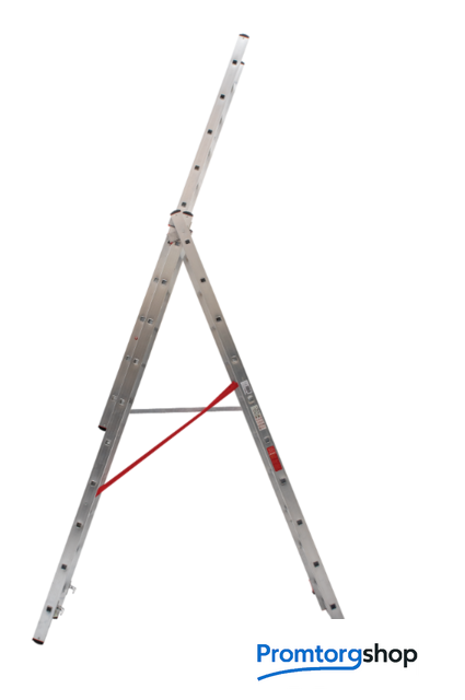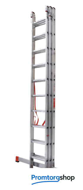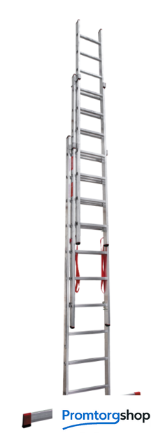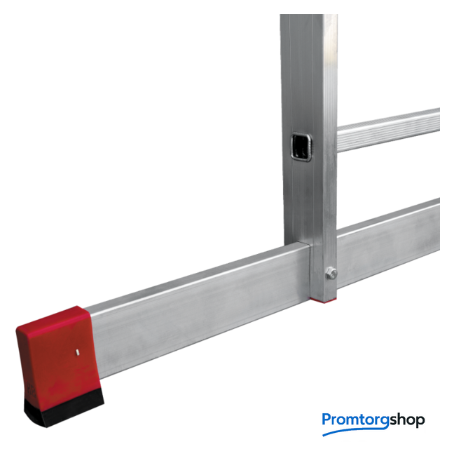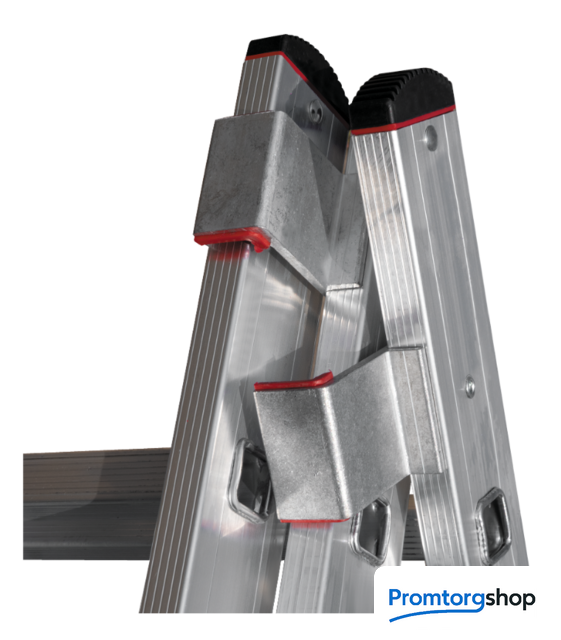 | Тип | лестница секционная, складная, разборная. Профессиональная лестница для ежедневного использования «5 в 1»: приставная лестница, приставная выдвижная двухсекционная лестница, приставная выдвижная трехсекционная лестница, двухсторонняя стремянка, стремянка с выдвижной секцией Ширина верхней секции - 400 мм, ширина нижней секции - 525 мм Рифлёные перекладины 28x28 мм для надёжного сцепления Направляющие кронштейны из пресованного алюминевого сплава для надежного удержания выдвижной секции во всех рабочих положениях Рифлёные ступени с шагом 260 мм для безопасного подъёма и спуска Надёжно закреплённые на стойках и траверсе опорные наконечники из двухкомпонентного пластика: жесткий компонент отвечает за надежность крепления, мягкий препятствует скольжению лестницы Широкая поперечная траверса 1210 мм для повышения устойчивости Многократная развальцовка в соединении ступеней со стойками для высокой прочности и долговечности Стойки и ступени изготовлены из прессованного алюминиевого профиля Алюминиевые зацепы с автоматическим фиксатором |