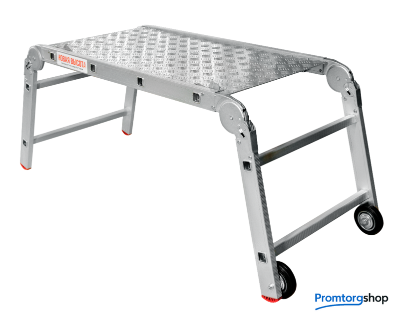 | Тип | рабочие подмости, складные. Профессиональные складные рабочие подмости из алюминиевого профиля «3 в 1»: помост, приставная лестница, приставная согнутая лестница. Идеально подходят для всех видов работ, требующих большой площадки Нескользящий настил из рифлёного алюминиевого листа Настил легко снимается для использования изделия в качестве приставной лестницы Легко устанавливаются и складываются в компактное положение для хранения и транспортировки Шарнирные замки регулируются одной рукой Надёжная автоматическая фиксация Оборудованы съёмными колёсами для большей мобильности Рабочая нагрузка и оптимальный размер площадки позволяет вести работу одновременно двум рабочим Стойки и ступени из экструдированных алюминиевых профилей Стойки с дополнительным усилием в наиболее нагруженных местах для повышения прочности Рифлёная поверхность ступеней для безопасного подъёма и спуска Многократная развальцовка в соединении ступеней со стойками обеспечивает высокую прочность и долговечность Опорные наконечники из прочного пластика для устойчивого положения Компактность при хранении и транспортировке Практичность и внимание к каждой детали гарантируют безопасность работы на любой высоте |