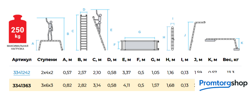 | Тип | рабочие подмости, складные. Профессиональные складные рабочие подмости из алюминиевого профиля «3 в 1»: помост, приставная лестница, приставная согнутая лестница. Идеально подходят для всех видов работ, требующих большой площадки Нескользящий настил из рифлёного алюминиевого листа Настил легко снимается для использования изделия в качестве приставной лестницы Легко устанавливаются и складываются в компактное положение для хранения и транспортировки Шарнирные замки регулируются одной рукой Надёжная автоматическая фиксация Оборудованы съёмными колёсами для большей мобильности Рабочая нагрузка и оптимальный размер площадки позволяет вести работу одновременно двум рабочим Стойки и ступени из экструдированных алюминиевых профилей Стойки с дополнительным усилием в наиболее нагруженных местах для повышения прочности Рифлёная поверхность ступеней для безопасного подъёма и спуска Многократная развальцовка в соединении ступеней со стойками обеспечивает высокую прочность и долговечность Опорные наконечники из прочного пластика для устойчивого положения Компактность при хранении и транспортировке Практичность и внимание к каждой детали гарантируют безопасность работы на любой высоте |