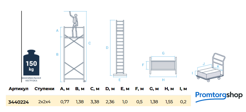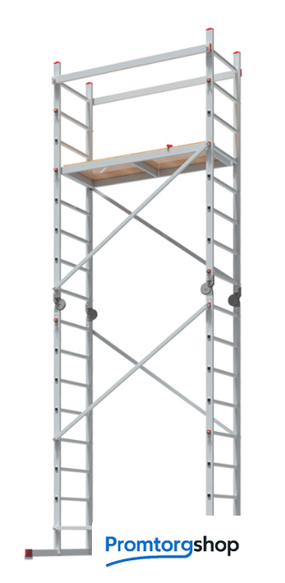 | Тип | вышка-тура, складная. Профессиональный многофункциональная вышка тура. Варианты использования: лестница, стремянка, рабочие подмости и вышка-тура. Легко устанавливается и обеспечивает высокий уровень комфорта Снабжена колёсами для удобства перемещения Оборудована шарнирными замками для лёгкой трансформации Помост из влагостойкой фанеры с возможностью установки на разных уровнях Люк в помосте для безопасного подъёма и спуска Усиленная траверса с возможностью регулировки для удобства работы вплотную у стены Опорные наконечники из прочного двухкомпонентного пластика для устойчивого положения Компактность при хранении и транспортировке Практичность и внимание к каждой детали гарантируют безопасность работы на высоте Схема сборки |
