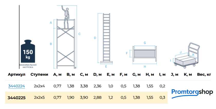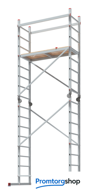 | Тип | вышка-тура, складная. Профессиональный многофункциональная вышка тура. Варианты использования: лестница, стремянка, рабочие подмости и вышка-тура. Легко устанавливается и обеспечивает высокий уровень комфорта Снабжена колёсами для удобства перемещения Оборудована шарнирными замками для лёгкой трансформации Помост из влагостойкой фанеры с возможностью установки на разных уровнях Люк в помосте для безопасного подъёма и спуска Усиленная траверса с возможностью регулировки для удобства работы вплотную у стены Опорные наконечники из прочного двухкомпонентного пластика для устойчивого положения Компактность при хранении и транспортировке Практичность и внимание к каждой детали гарантируют безопасность работы на высоте Схема сборки |