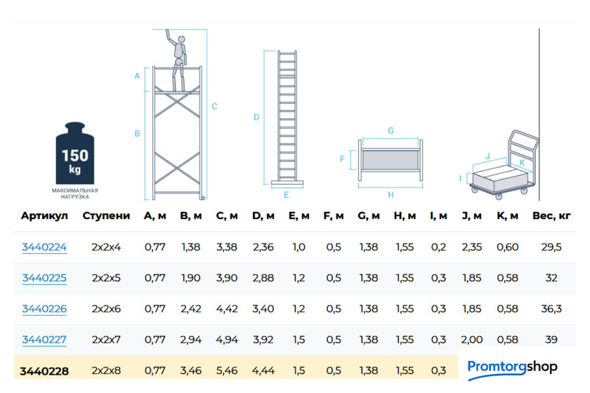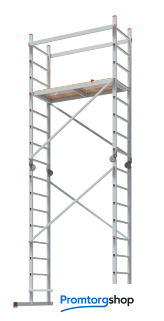 | Тип | вышка-тура, складная. Профессиональный многофункциональная вышка тура. Варианты использования: лестница, стремянка, рабочие подмости и вышка-тура. Легко устанавливается и обеспечивает высокий уровень комфорта Снабжена колёсами для удобства перемещения Оборудована шарнирными замками для лёгкой трансформации Помост из влагостойкой фанеры с возможностью установки на разных уровнях Люк в помосте для безопасного подъёма и спуска Усиленная траверса с возможностью регулировки для удобства работы вплотную у стены Опорные наконечники из прочного двухкомпонентного пластика для устойчивого положения Компактность при хранении и транспортировке Практичность и внимание к каждой детали гарантируют безопасность работы на высоте |