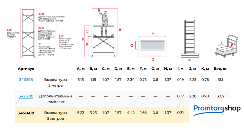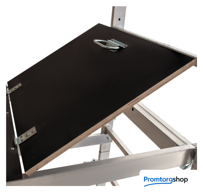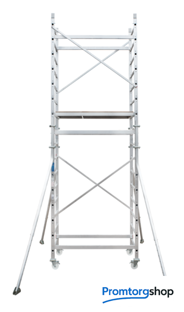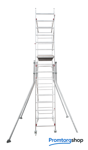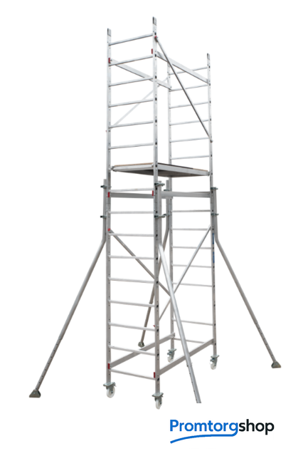 | Тип | вышка-тура, разборная. Профессиональная вышка-тура для использования при проведении внутренних и наружных работ. Простота в установке и высокий уровень комфорта Поручни с четырёх сторон площадки Снабжена колёсами для удобства перемещения Возможность установки на лестничных маршах Стойки и перекладины из усиленных экструдированных алюминиевых профилей увеличенного сечения Помост из влагостойкой нескользящей фанеры с возможностью установки на разных уровнях Люк в помосте для безопасного подъёма и спуска Поворотные консоли с углом монтажа 180 градусов Возможность увеличения рабочей высоты до 7 м Поворотные ролики диаметром 125 мм с фиксацией угла поворота и тормозом колеса Компактность при хранении и транспортировке Практичность и внимание к каждой детали гарантируют безопасность работы на высоте |