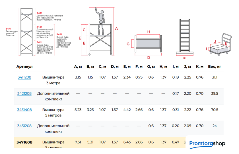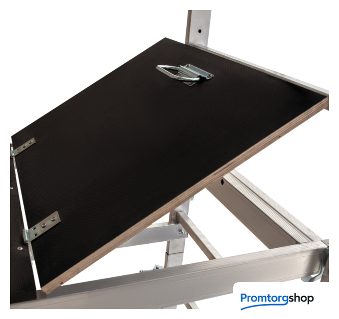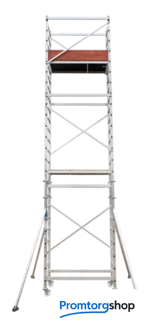 | Тип | вышка-тура, разборная. Вышка-тура профессиональная для использования при проведении внутренних и наружных работ. Снабжена колёсами для удобства перемещения Возможность установки на лестничных маршах Простота в установке и высокий уровень комфорта Стойки и перекладины из усиленных экструдированных алюминиевых профилей увеличенного сечения Поворотные ролики диаметром 125 мм с фиксацией угла поворота и тормозом Поворотные консоли с углом монтажа 180 градусов Помост из влагостойкой нескользящей фанеры с возможностью установки на разных уровнях Люк в помосте для безопасного подъёма и спуска Компактность при хранении и транспортировке Практичность и внимание к каждой детали гарантируют безопасность работы на высоте |
