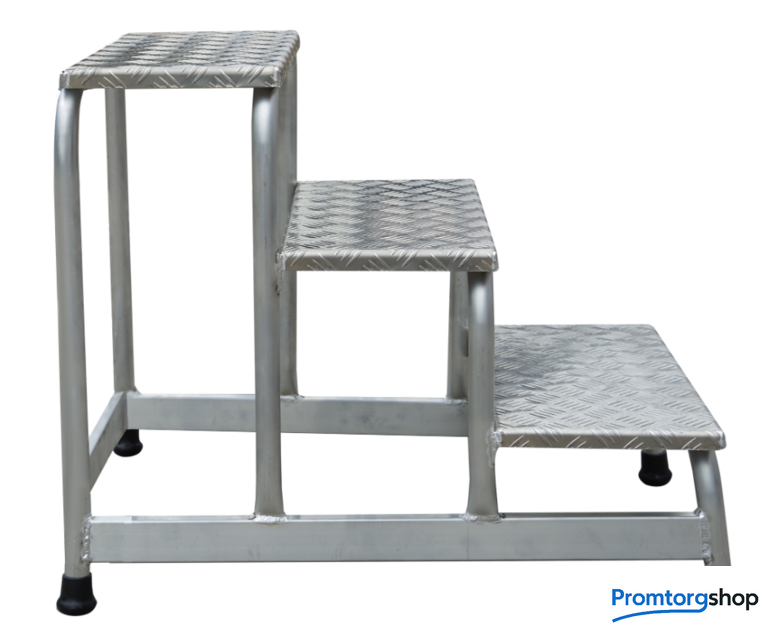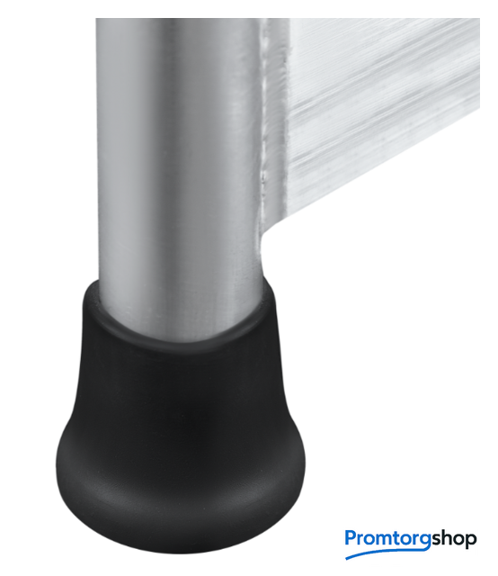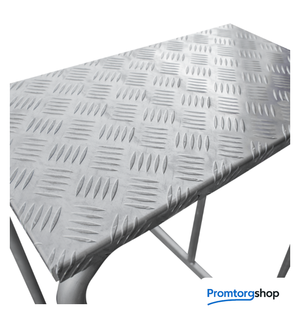 | Тип | монтажная подставка, неразборная. Профессиональная подставка с широкими нескользящими ступенями для строительных работ с интенсивными нагрузками. Устойчивая сварная конструкция из прочных алюминиевых труб. Рабочая площадка 520×305 мм. Пространство для поворота и боковых перемещений. Широкие ступени — площадки 240 мм из рифлёного алюминиевого листа для надёжного сцепления. Башмаки стоек-опор из прочного пластика. Не скользят и не повреждают поверхность. |