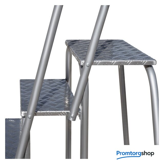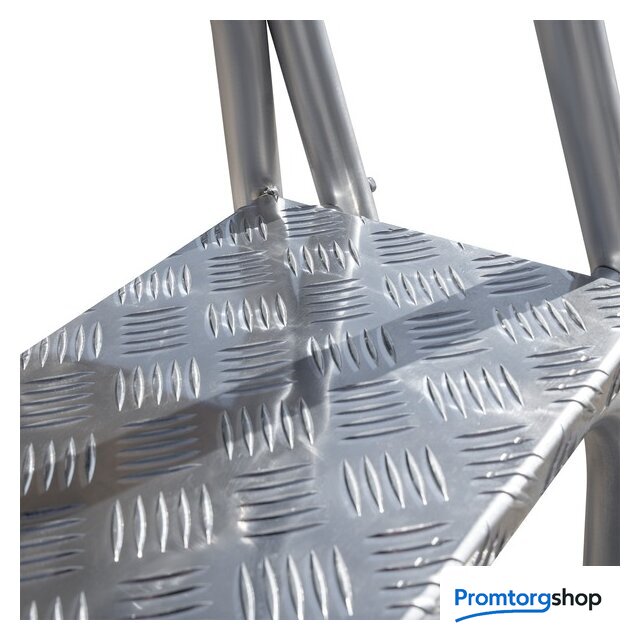 | Тип | монтажная подставка. Подставка с широкими нескользящими ступенями для строительных работ с интенсивными нагрузками. Точка опоры на высоте. Устойчивая сварная конструкция из прочных алюминиевых труб. Рабочая площадка 520×305 мм. Пространство для поворота и боковых перемещений. Широкие ступени — площадки 240 мм из рифлёного алюминиевого листа для надёжного сцепления. Съёмный переставляемый поручень для безопасного подъёма и спуска. Башмаки стоек-опор из прочного пластика. Не скользят и не повреждают поверхность. |
