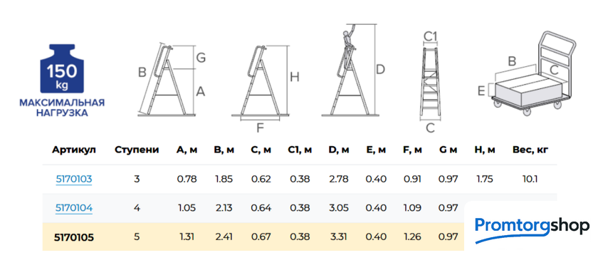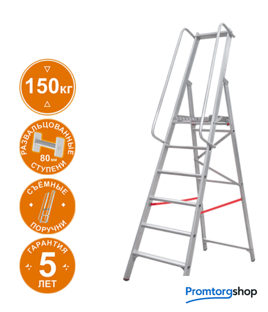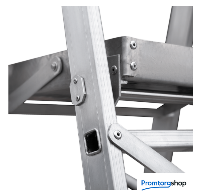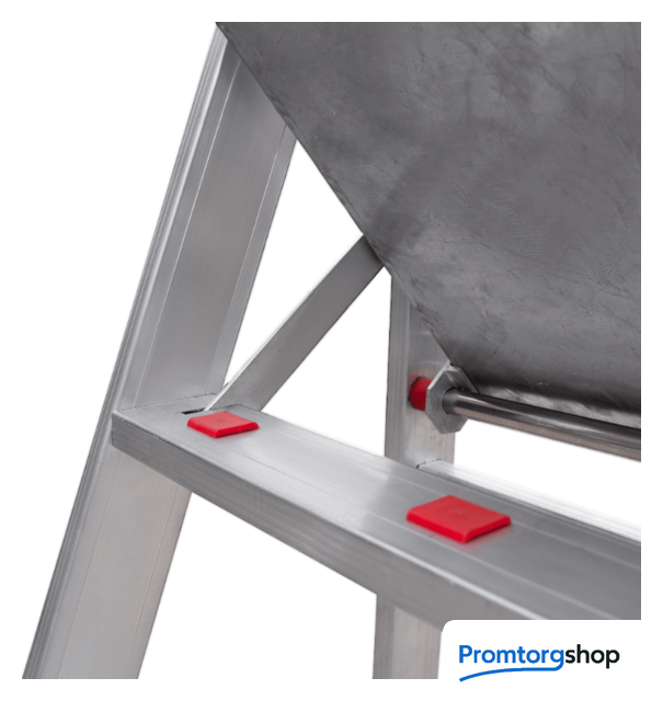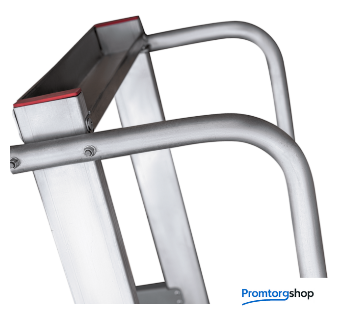 | Тип | лестница-стремянка, складная, неразборная. Индустриальная стремянка с ограждением, широкой площадкой и развальцованными ступенями для интенсивной длительной эксплуатации Рабочая площадка 400x400 мм с поднятыми бортами 60 мм. Большая площадка увеличивает радиус работы. Съемные поручни с двух сторон лестничного подъёма. Усиленный профиль стоек с рёбрами жёсткости. Рифлёные развальцованные ступени 80 мм (евростандарт). Развальцованное соединение ступеней не уступает по прочности сварке. Безопасная конструкция механизма складывания. Обеспечивает удобство хранения и транспортировки. Дополнительные поперечные распорки для повышения жёсткости конструкции. Соответствует ГОСТ Р 58753-2019. Страховочные ремни с усиленными стальными крепёжными петлями. Опорные наконечники из 2-компонентного пластика. Не скользят и не повреждаютповерхность. |