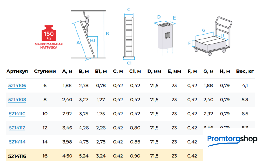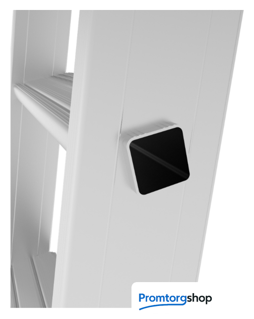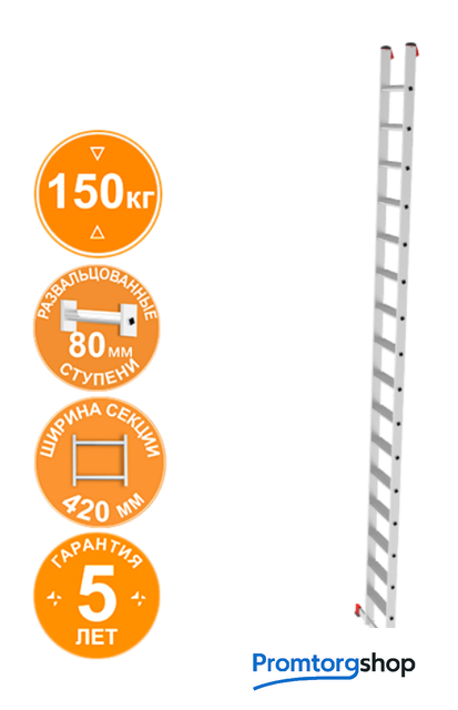 | Тип | приставная лестница, неразборная. Индустриальная прочная приставная лестница для интенсивного использования. Развальцованные широкие ступени 80 мм увеличивают время работы на высоте. Ширина секции: 420 мм. Развальцованные широкие рифленые ступени 80 мм. Профиль стоек: 72×23 мм. Вальцовочное крепление ступеней. По прочности не уступает сварке. Пластиковые опоры на стену предохраняют поверхность от повреждений. Широкая опорная траверса. Встроенный крепёж. Собирается одним ключом. Башмаки стоек сверху и снизу лестницы и траверсы из 2х-компонентного пластика с прорезиненной опорой. Не скользят и не повреждают поверхность. |