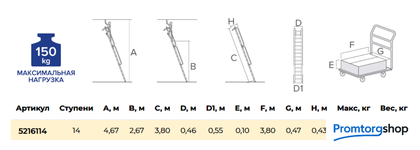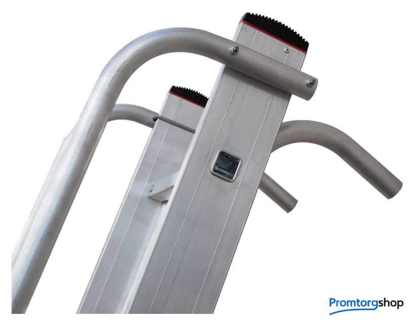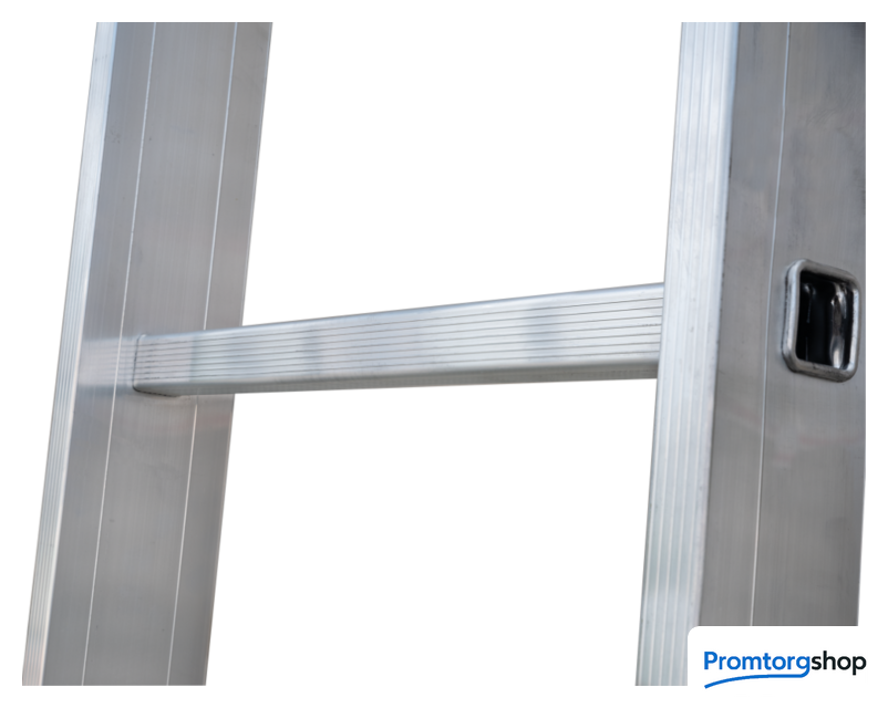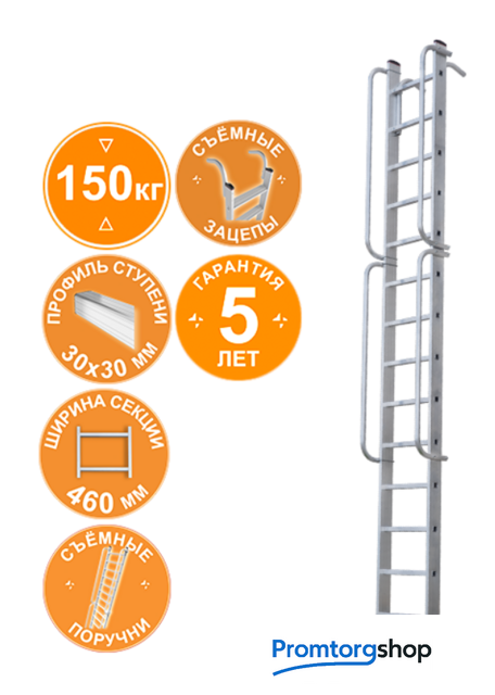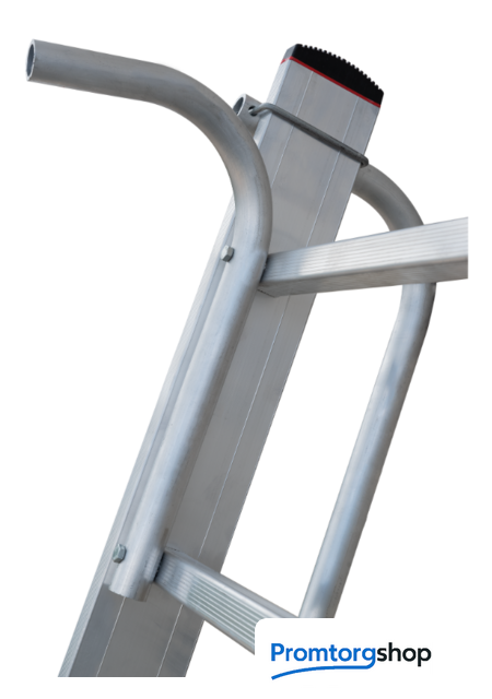 | Тип | лестница-стремянка, неразборная. Индустриальная высокопрочная лестница со съёмными поручнями и зацепами для интенсивного использования увеличенной ширины 460 мм. Съёмные зацепы для крепления за элементы конструкций при проведении высотных работ. Съёмные поручни по обеим сторонам лестницы для безопасного подъёма и спуска. Увеличенная ширина 460 мм для удобства и устойчивости Увеличенные рифлёные перекладины 30×30 мм для надёжного сцепления. Вальцовочное крепление перекладин. По прочности не уступает сварке. Башмаки стоек из 2х-компонентного пластика с прорезиненной опорой сверху и снизу лестницы. Не скользят и не повреждают поверхность. |