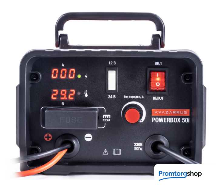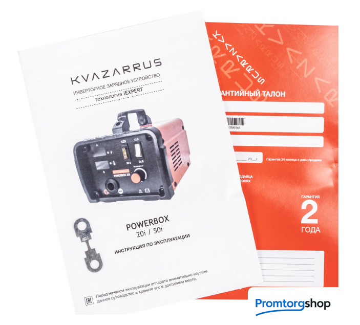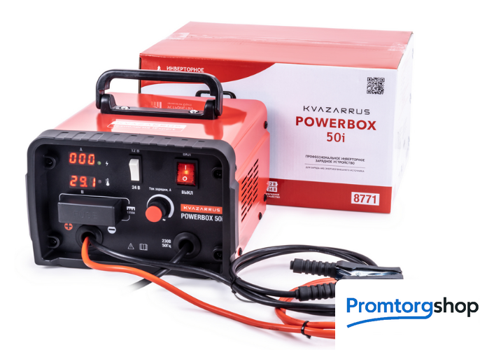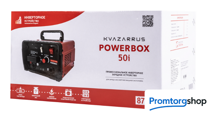 | Комплект поставки | Инверторное зарядное устройство KVAZARRUS PowerBox 50i – 1 шт.; • Предохранитель 50 А – 1 шт.; • Инструкция по эксплуатации + гарантийный талон – 1 компл. |