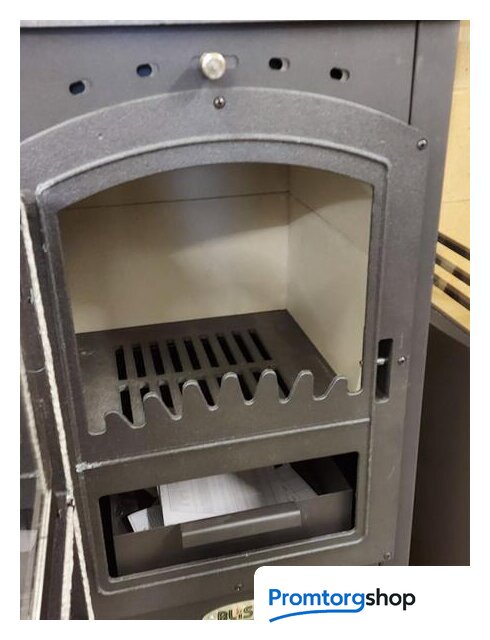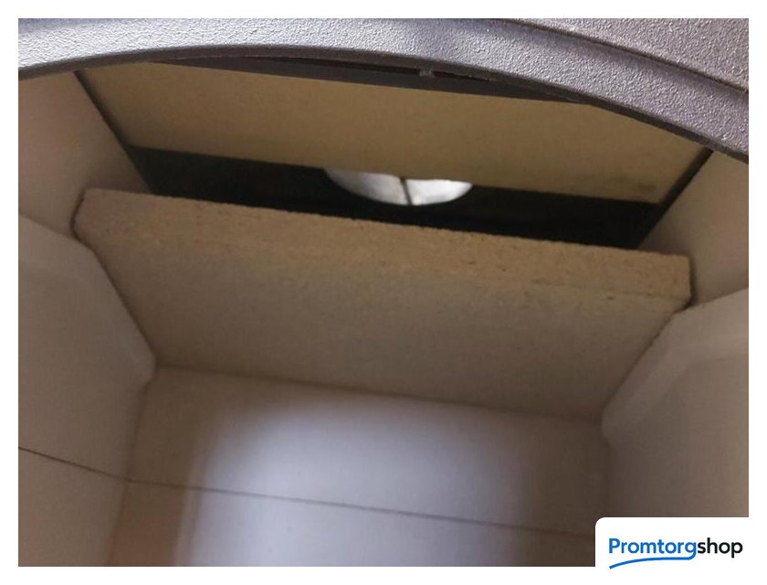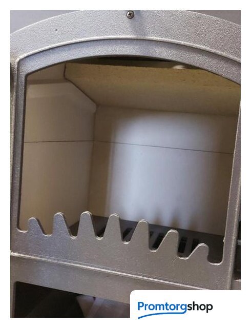 Материал топки | шамот. В верхней части топочной камеры располагается двойной отбойник из вермикулита |