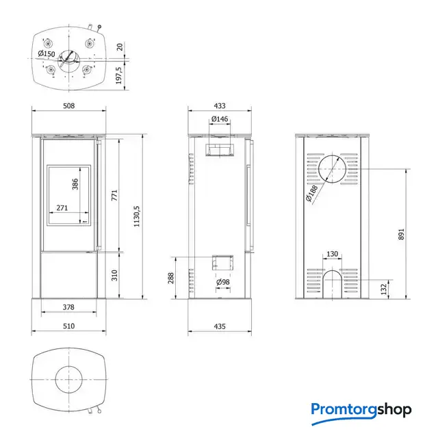 Материал топки | Шамот, выдерживающий температуру до 660 °C |