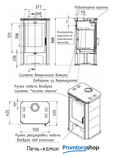 Тип | свободностоящая печь-камин |