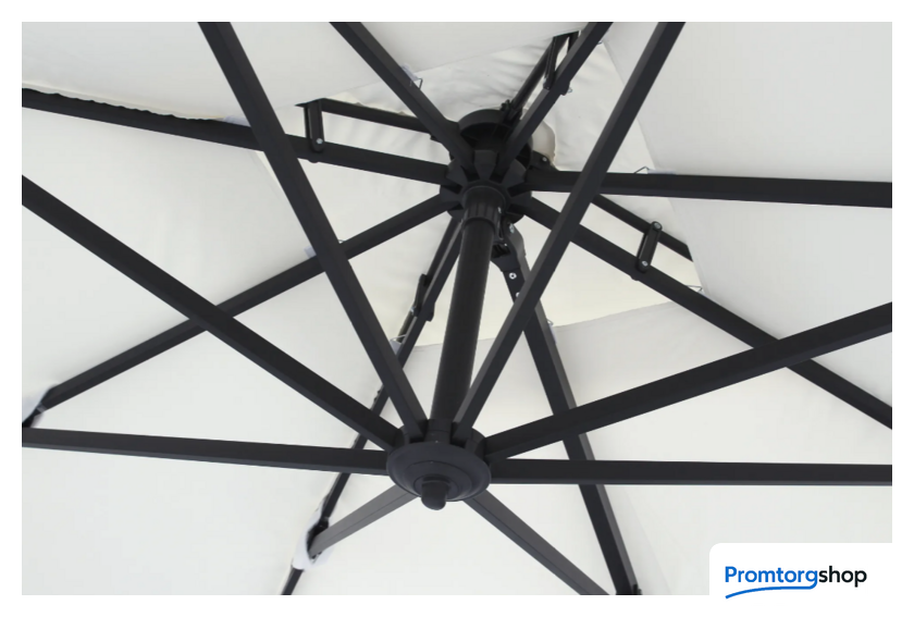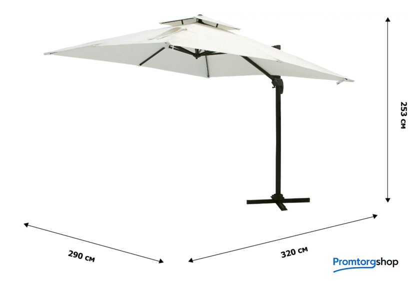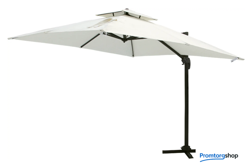 | Тип | садовый зонт. Большой зонт – незаменим для отдыха на даче, загородном участке и около бассейна. Садовый зонт защитит вас от яркого солнца и создаст комфортную тень. Благодаря боковому расположению стойки зонта под куполом можно установить любую садовую мебель: от шезлонга до обеденного стола.Габариты элементов: длина крыши — 297 см, высота стойки максимальная — 270 см (стойка регулируется по высоте, для чего предусмотрены отверстия на стойке), размер профильной стойки — 8×4 см, расстояние от пола до крыши зонта (максимальный подъём) — 202 см, расстояние от пола по центру зонта до верхней точки купола — 270 см, глубина конструкции внутри зонта по центру — 55 см, толщина спицы — 2.5×1.5 см. |