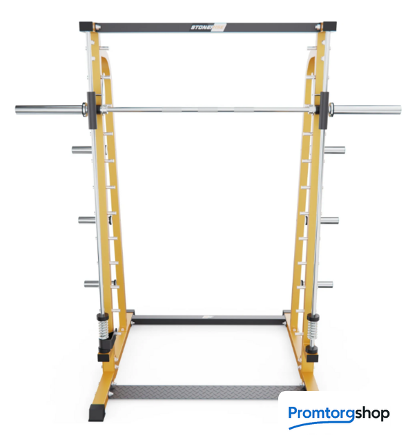 | Тип | Машина Смита – это надежный и универсальный тренажер для домашних тренировок, позволяющий выполнять широкий спектр упражнений для проработки всех групп мышц. Конструкция обеспечивает безопасность занятий даже без партнера, а удобные регулировки делают тренировки комфортными для пользователей любого уровня подготовки. Каркас изготовлен из прочной стали с профилем 70×50×2 мм, что гарантирует устойчивость и долговечность конструкции. Машина оснащена встроенным грифом длиной 180 см с посадочным диаметром 50 мм и максимальной нагрузкой до 300 кг. Для хранения дисков предусмотрено 6 посадочных мест диаметром 50 мм, каждое из которых выдерживает нагрузку до 150 кг. Тренажер имеет 9 уровней регулировки по высоте, что позволяет гибко настраивать рабочее положение под разные упражнения и рост спортсмена. Для дополнительных тренировок предусмотрен турник длиной 88 см с максимальной нагрузкой до 200 кг. Форма поставки в разобранном виде |