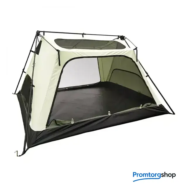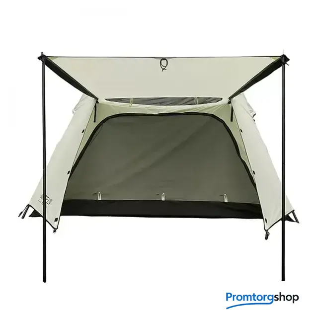 Тип | кемпинговая. Форма палатки нестандартная. Практичная и вместительная кемпинговая палатка с эстетичным внешним видом и малыми габаритами в сложенном состоянии. Быстро собирается на месте силами 1-2 человек, обеспечивает надежную защиту от осадков, солнца, прохлады и насекомых. Отличается продолжительным сроком службы каркаса, тента и фурнитуры, сбалансированной компоновкой дверей и окон, стойкостью к сильным ветровым нагрузкам. Универсальная кемпинговая палатка для различных задач Охота, рыбалка, отдых на дикой природе; Продолжительный автомобильный туризм; Организация лагеря при массовых мероприятиях, сборах; Создание дополнительного жилища на загородном участке. Износостойкий и прочный тент Руководствуясь высокими требованиями к прочности и износостойкости, для изготовления использован полиэстер 210T с усилением Ripstop (делает палатку более прочной на разрыв). Такой материал отличается небольшим весом, но выдерживает экстремальную эксплуатацию, не пропускает влагу, сохраняет форму после длительного использования. К иным достоинствам ткани относят: Стойкость к атмосферным воздействиям, растяжению и механическим повреждениям; Сохранение прохлады при жаркой и тепла при холодной погоде; Устойчивость к выцветанию под палящими лучами солнца; Приятную на ощупь поверхность, минимальный уровень шума в ветер. Красота и практичность Яркий оранжевый цвет стен и крыши хорошо заметен издалека, что снижает риск потерять лагерь из виду при исследовании ближайшей местности. Приятный оттенок наполняет внутреннее пространство гармонией, дарит положительные эмоции как в пасмурную, так и солнечную погоду. Черный пол маскирует частицы грязи, что исключает необходимость в периодической стирке и чистке химическими составами. Стойкость к водяному столбу 3000мм Дополнительный барьер для не проникновения внутрь влаги, создает полиуретановая пропитка тента 3000мм. С ней палатке не страшен проливной дождь, размещение на влажной земле и траве, что подходит для отдыха в регионах с неустойчивым климатом. Комфортный отдых при любой погоде Модульная конструкция позволяет быстро превратить палатку в место для кратковременного отдыха и ночевки или теплое жилище на даче. Сетчатая ткань обеспечивает естественное проветривание и ограничивает доступ насекомых, плотный тент защищает от осадков и ветра. Продуманная вентиляция и освещение С несколькими широкими дверями несложно выбрать место для входа в зависимости от предпочтений и размещения палатки. Панорамные окна на крыше обеспечивают максимум освещения днем и позволяют наслаждаться видами звездного неба ночью. Небольшие треугольные проемы под потолком создают приятный микроклимат в любую погоду. Прозрачные TPU вставки отлично пропускают свет и защищают от осадков, сетчатые – открывают свободный доступ воздуха, препятствуют проникновению насекомых. Дополнительное пространство Широкий навес с легкостью раскрывается перед палаткой при помощи 2 шестов, что открывает возможность разместить под ним кухню или дорожную кладь. К тому же он защищает от попадания сквозь открытую дверь лучей солнца, предотвращает скопление у входа грязи при проливном дожде. Высокопрочные дуги Несущие 19-миллиметровые дуги каркаса выполнены из дюралюминиевого сплава 7001, дополнительные – из стекловоло