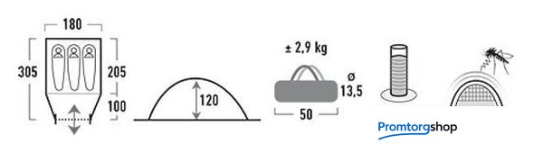| Водостойкость тента | 1 500 мм вод. ст. |