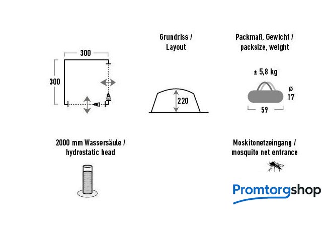 | Водостойкость тента | 2 000 мм вод. ст. |