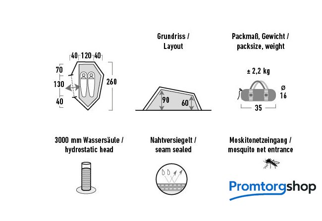 | Водостойкость тента | 3000 мм. Водостойкость дна 3000 мм |