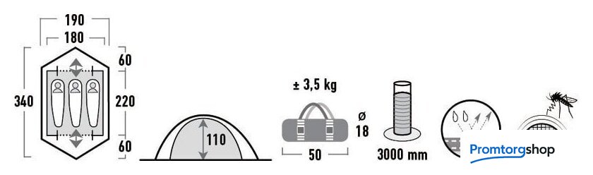 | Водостойкость тента | 3 000 мм вод. ст. |