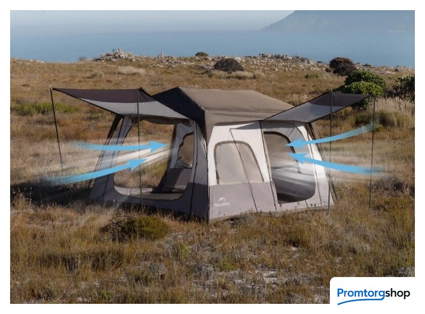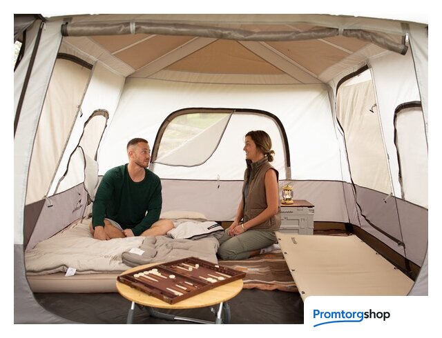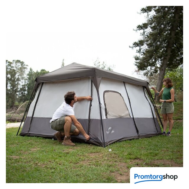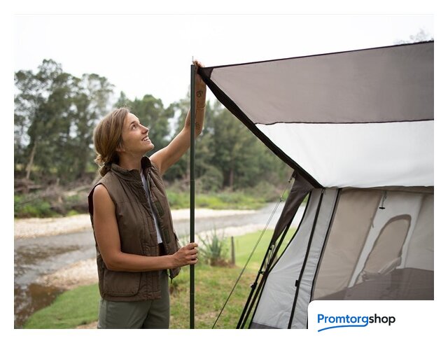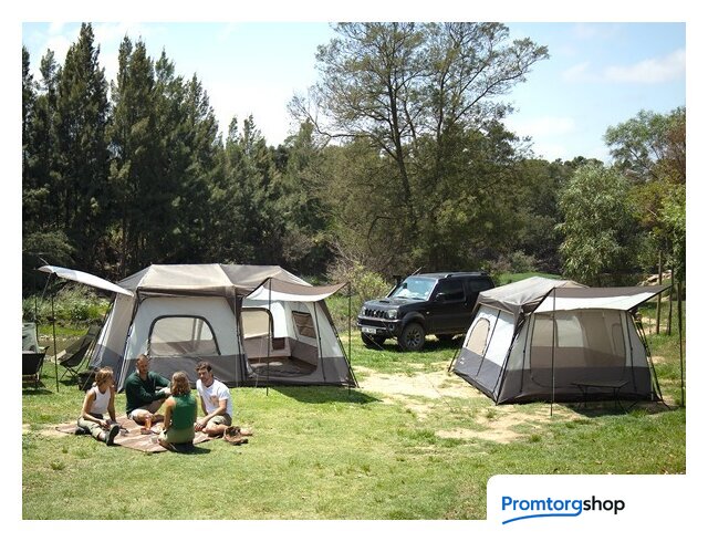 | Тип | кемпинговая, шатровая. Комплектация сумка, инструкция, ввертыш, противомоскитная сетка, карманы, навес (3 шт.). Один из лучших кемпинговых вариантов. Это более 8 квадратных метров комфортного обитания на природе. Домашний уют в любом месте, где вы запланировали отдых. Три входа позволят создать практически любую комбинацию интерьера. Огромные маркизы над входами значительно увеличивают комфортное пространство, создавая большую площадь тени. В палатке отлично уместятся раскладушки и стол. Палатка позволяет с комфортом переждать непогоду в теплой компании. Установить палатку возможно силами одного человека. |