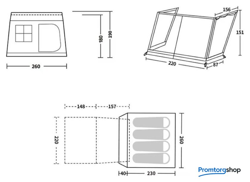 | Водостойкость тента | 2 000 мм вод. ст. |