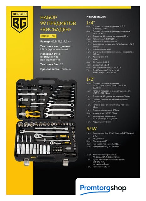 | Биты (насадки-отвертки) | 32 (Hex, Torx, Phillips, Slotted) |