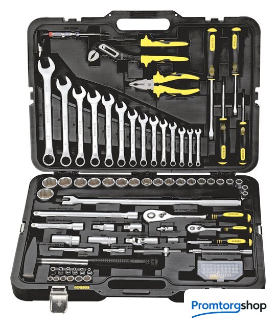 | Комплектация | - 12 шт.: 1/4" Головки торцевые 6-гранные Super Lock: 4, 4.5 ,5, 5.5, 6, 7, 8, 9, 10, 11, 12, 13 мм- 1 шт.: 1/4" Трещотка (ключ трещоточный с быстрым сбросом): 45 зубов- 1 шт.: 1/4" Отвертка с присоединительным квадратом- 2 шт.: 1/4" Удлинитель: 50, 100 мм- 1 шт.: 1/4" Кардан шарнирный- 1 шт.: 1/4" Гибкий удлинитель: 150 мм- 1 шт.: 1/4" Вороток Т-образный: 110 мм- 1 шт.: 1/4" Адаптор для бит- 30 шт.: 1/4" Набор бит:Torx (звёздочка): T10, T15, T20, T25, T27, T30Ph (крест): 0, 1, 2, 3, 4Pz (позидрайв): 0, 1, 2, 3, 4Hex (шестигранник): 1.5, 2, 2.5, 3, 4, 5, 6Slot (шлиц): 3, 4, 4.5, 5, 5.5, 6, 7- 1 шт.: 1/4" Держатель для бит магнитный- 20 шт.: 1/2" Головки торцевые 6-гранные Super Lock: 8, 10, 12, 13, 14, 15, 16, 17, 18, 19, 20, 21, 22, 23, 24, 25, 26, 27, 30, 32 мм- 2 шт.: 1/2" Головки свечные магнитные: 16, 21 мм- 1 шт.: 1/2" Трещотка (ключ трещоточный с быстрым сбросом): 45 зубов- 1 шт.: 1/2" Вороток шарнирный: 430 мм- 3 шт.: 1/2" Удлинитель: 50, 125, 250 мм- 1 шт.: 1/2" Кардан шарнирный- 1 шт.: 1/2" Переходник скользящий- 1 шт.: Молоток (метал, прорезиненная ручка): 500 грамм- 14 шт.: Ключи комбинированные: 6, 7, 8, 9, 10, 11, 12, 13, 14, 15, 16, 17, 19, 22 мм- 1 шт.: Пассатижи: 180 мм- 1 шт.: Клещи переставные: 250 мм- 4 шт.: Отвертки:Slot (шлиц): 6,5 x 100, 8 x 150 ммPh (крест): 1x75, 2 x100 мм- 1 шт.: Автотестер 6-12-24 V |