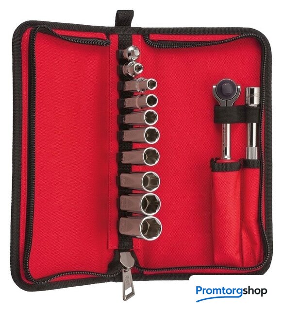 Комплектация | - Трещотка 3/8"- Торцевая головка 3/8": 10, 12, 13, 14, 15, 17, 18, 19 мм- Адаптер 3 шт. |