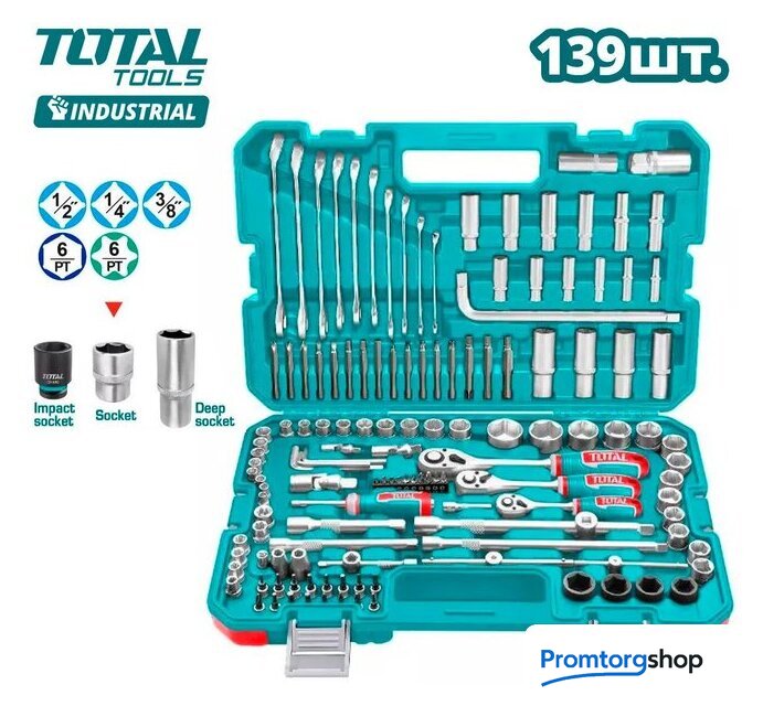 | Комплектация | Трещотки (1/4'', 3/8'', 1/2'') - 3 шт. Торцевые шестигранные головки 1/4'' (6, 7, 8, 9, 10, 11, 12, 13 мм) - 8 шт. Торцевые шестигранные головки 3/8'' (10, 11, 12, 13, 14, 15, 16, 17, 18 мм) - 9 шт. Торцевые шестигранные головки 1/2'' (14, 15, 16, 17, 18, 19, 20, 21, 22, 24, 27, 30, 32 мм) - 13 шт. Ударные торцевые шестигранная головки 1/2'' (17, 19, 21, 22 мм) - 4 шт. Торцевые головки TORX 3/8'' (E8, E10, E11, E12, E14, E16) - 6 шт. Глубокие шестигранные головки 1/4'' (6, 7, 8, 10, 12, 13 мм) - 6 шт. Глубокие шестигранные головки 3/8'' (8, 10, 12, 13, 14, 15 мм) - 6 шт. Глубокие шестигранные головки 1/2'' (17, 18, 19, 22 мм) - 4 шт. Свечные головки 1/2'' (16, 21 мм) - 2 шт. Удлинители 1/4'' (50, 100 мм) - 2 шт. Удлинители 3/8'' (150, 250 мм) - 2 шт. Удлинители 1/2'' (125, 250 мм) - 2 шт. Скользящая планка "Т" 3/8" 9x160 мм - 1 шт. Скользящая планка "Т" 1/4" - 1 шт. Трехходовой адаптер 1/4'' (3/8''(F) * 1/4''(M)) - 1 шт. Трехходовой адаптер 1/2'' (3/8''(F) * 1/2''(M) - 1 шт. Универсальный шарнир (1/4'', 3/8'', 1/2'') - 3 шт. Вороток 1/4'' * 150 мм - 1 шт. Ручка 1/2"*10" L - 1 шт. Держатель бит 1/4'' * 6,35 мм - 1 шт. Держатель бит 3/8" * 8 мм - 1 шт. Держатель бит 1/2" * 8 мм - 1 шт. Биты Hex 1/4'' * 25 мм (SL3, SL4, SL5, SL6, PH0, PH1, PH2, PH3, PZ0, PZ1) - 10 шт. Биты 8x70 мм (PH1, PH2, PH3, H6, H7, H8, H10, H12, SL5.5, SL6.5, T20, T30, T40, T45, T50, T55) - 16 шт. Головки биты Hex 1/4'' * 32 мм (PH1, PH2, H3, H4, H5, H6, SL4, SL5.5, SL6.5, T8, T10, T15, T20, T25, T30, T40) - 16 шт. Комбинированне гаечные ключи (8, 10, 12, 13, 14, 15, 16, 17, 18, 19 мм) - 10 шт. Набор шестигранных ключей: (1.5, 2, 2.5, 3, 4, 5, 5.5, 6 мм) - 8 шт. Кейс |