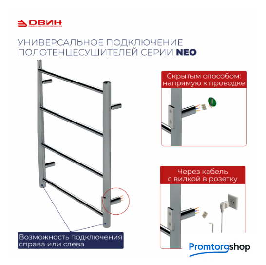 | Тип | Электрический полотенцесушитель Fj neo нагревается посредством электронагревателя. Модель, выполненная в форме лесенки, подходит для установки в квартире, коттедже или дачном доме. Полотенцесушитель выполнен из нержавеющей стали AISI-304. Материал прочен и устойчив к коррозии. Благодаря продуманной конструкции, полотенцесушитель легко подключается к сети как справа, так и слева. Модель поставляется с коробом для скрытого монтажа, который сразу установлен на изделие и окрашен в оттенок корпуса. На корпусе изделия расположен блок управления, который позволяет устанавливать таймер, регулировать степень нагрева и полностью отключать устройство. |
