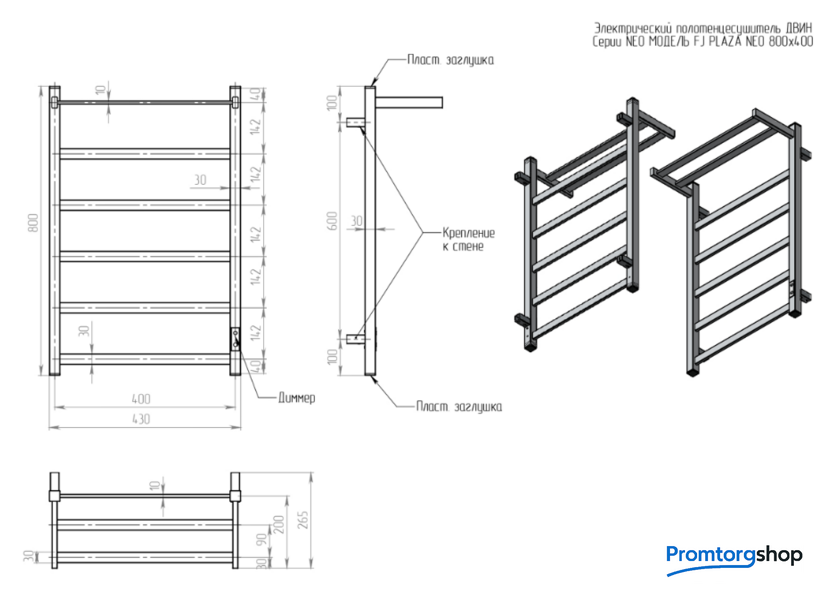 | Тип | Полотенцесушитель Fj plaza Электрический К диммер квадрат позволяет выбирать разные варианты установки. Она может быть открытой и скрытой. В комплекте идут кабель и специальные держатели. Продуманная конструкция модели делает возможным подключение к сети как справа, так и слева. На корпусе изделия расположен блок управления, который позволяет устанавливать таймер на период от 2 до 6 часов, регулировать степень нагрева и полностью отключать устройство. Полка полностью прогревается ! |