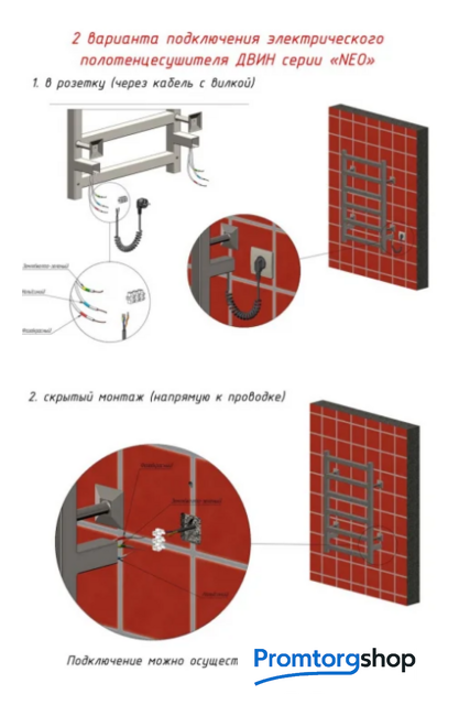 | Тип | Электрический полотенцесушитель из квадратного профиля J plaza с димером из серии "Neo". Уникальная конструкция позволяет осуществить подключение к электросети, где бы ни находилась розетка — справа или слева! Коробка под скрытый монтаж уже установлена на изделие и окрашена в цвет корпуса! Кабель с вилкой для подключения к розетке и держатели к стене в комплекте. |