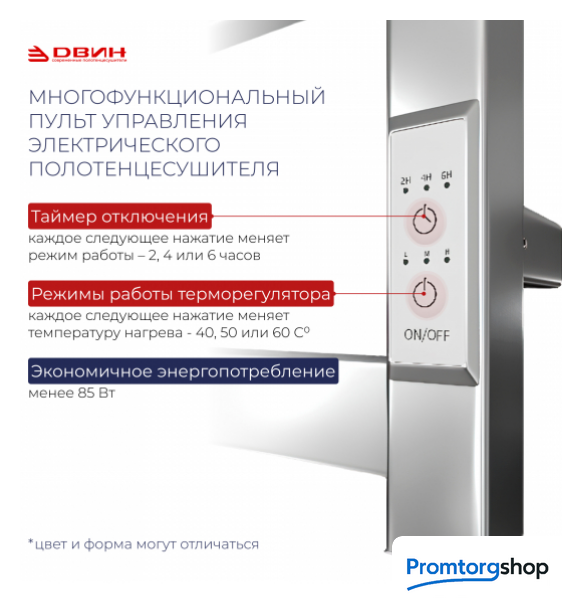 | Таймер | таймер (2, 4, 6 часов), кнопка, терморегулятор (40°, 50°, 60°) |
