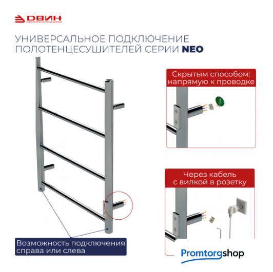 | Тип | 220 В / 50 Гц. Электрический полотенцесушитель L neo — современное и стильное решение для вашей ванной комнаты. Уникальная конструкция позволяет осуществить подключение к электросети, где бы ни находилась розетка — справа или слева! Коробка под скрытый монтаж уже установлена на изделие и окрашена в цвет корпуса. В комплекте также идут кабель с вилкой для подключения к розетке и держатели к стене. Модель отличается низким энергопотреблением, что делает её экономичной и эффективной. Электрический полотенцесушитель L с диммером "NEO" — идеальное сочетание стиля, функциональности и передовых технологий, обеспечивающее комфорт и удобство в вашей ванной комнате. Закажите его сегодня и наслаждайтесь теплом и уютом в вашем доме! |