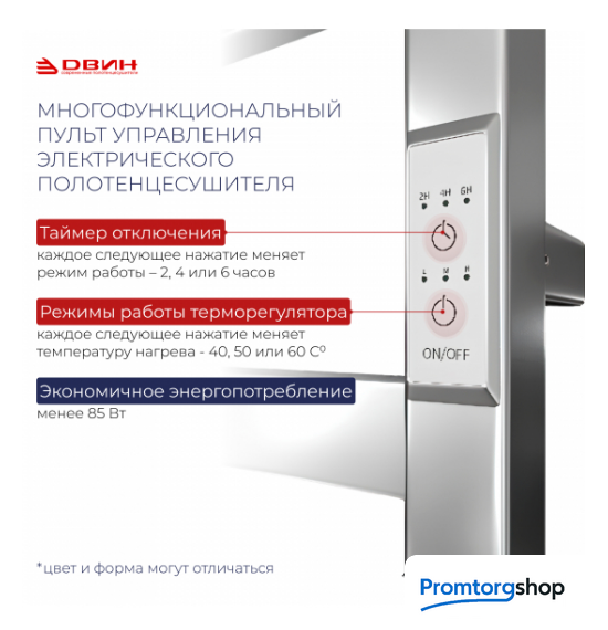 | Таймер | таймер (2, 4, 6 часов), кнопка, терморегулятор (40°, 50°, 60°) |