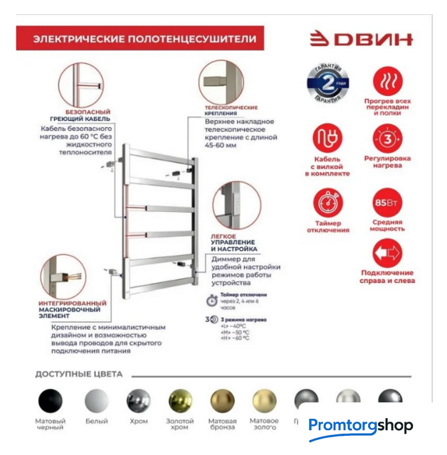 | Тип | Электрический полотенцесушитель LX-2 plaza neo позволяет выбирать разные варианты установки. Она может быть открытой (через вилку в розетку) или скрытой. В комплекте идут кабель и специальные держатели. Продуманная конструкция модели делает возможным подключение к сети как справа, так и слева. На корпусе изделия расположен блок управления, который позволяет устанавливать таймер на период от 2 до 6 часов, регулировать степень нагрева и полностью отключать устройство. Страна производства: Россия |