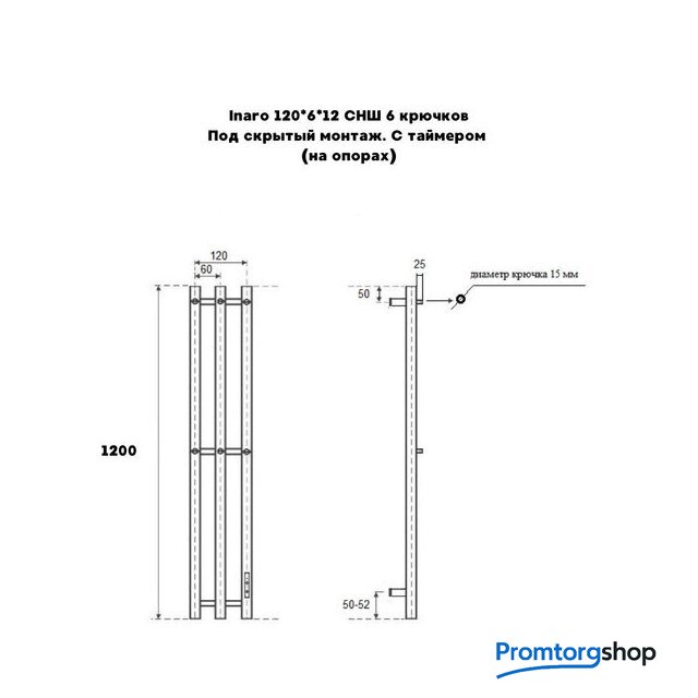 Тип | электрический. Описание Электрический полотенцесушитель Маргроид Ferrum Inaro СНШ 120х6х12 изготовлен из конструкционной стали. Устанавливается на 4 опоры. Внутри полотенцесушителя протянут нагревательный шнур. С правой стороны установлен диммер со световой индикацией, позволяющий выставить температуру и таймер нагрева. Выводы для подключения к электросети предусмотрены с обеих сторон. Полотенцесушитель имеет 3 терморежима (40℃, 50℃, 60℃) и 3 режима таймера (2, 4 или 6 часов). Маргроид Ferrum Inaro позволяет экономить электроэнергию, так как потребляет не более 100 Вт, что сравнимо с обычной лампочкой. Время нагрева составляет 10 минут. 3 терморежима: - 40℃ - 50℃ - 60℃ 3 режима таймера: - 2 часа - 4 часа - 6 часов |
