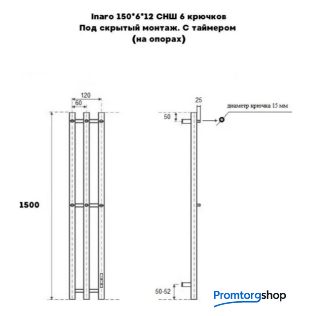 Тип | электрический. Описание Электрический полотенцесушитель Маргроид Ferrum Inaro СНШ 120х6х12 изготовлен из конструкционной стали. Устанавливается на 4 опоры. Внутри полотенцесушителя протянут нагревательный шнур. С правой стороны установлен диммер со световой индикацией, позволяющий выставить температуру и таймер нагрева. Выводы для подключения к электросети предусмотрены с обеих сторон. Полотенцесушитель имеет 3 терморежима (40℃, 50℃, 60℃) и 3 режима таймера (2, 4 или 6 часов). Маргроид Ferrum Inaro позволяет экономить электроэнергию, так как потребляет не более 100 Вт, что сравнимо с обычной лампочкой. Время нагрева составляет 10 минут. 3 терморежима: - 40℃ - 50℃ - 60℃ 3 режима таймера: - 2 часа - 4 часа - 6 часов |