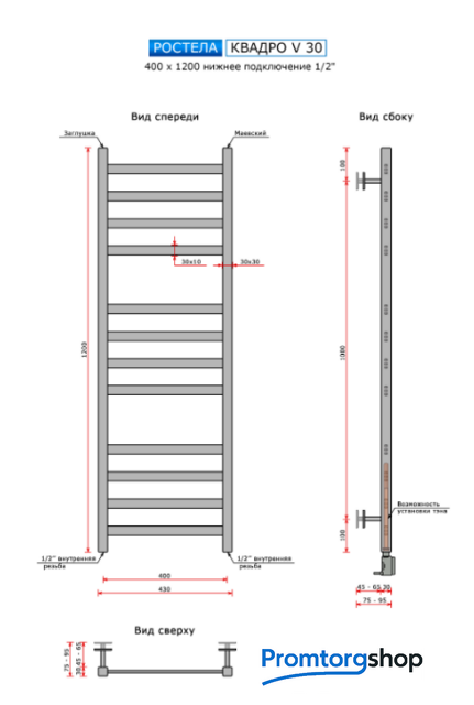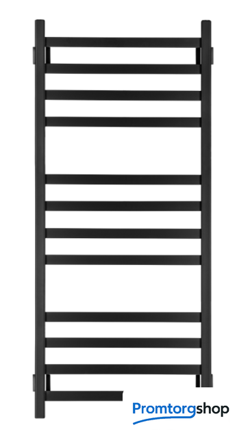 | Тип | водяной. Полотенцесушитель представляет собой лесенку из квадратной профильной трубы с перекладинами размером 30х10 мм, которые расположены группами. Данная модель окрашена черной матовой полимерной порошковой краской. |