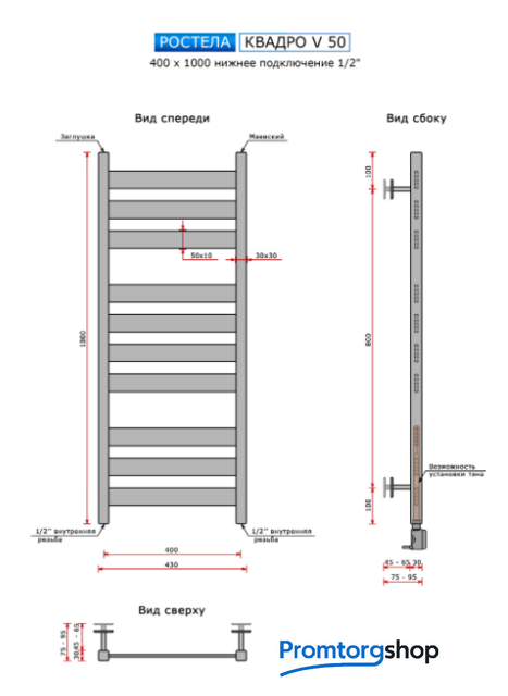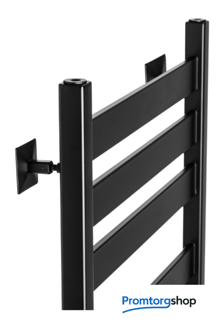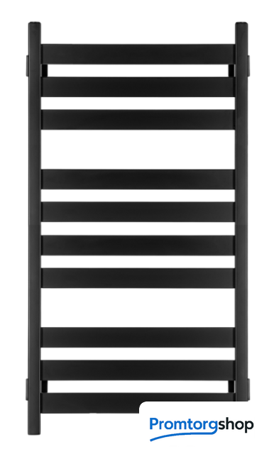 | Тип | водяной. Полотенцесушитель представляет собой лесенку из квадратной профильной трубы с перекладинами размером 50х10 мм, которые расположены группами. Данная модель окрашена черной матовой полимерной порошковой краской. |