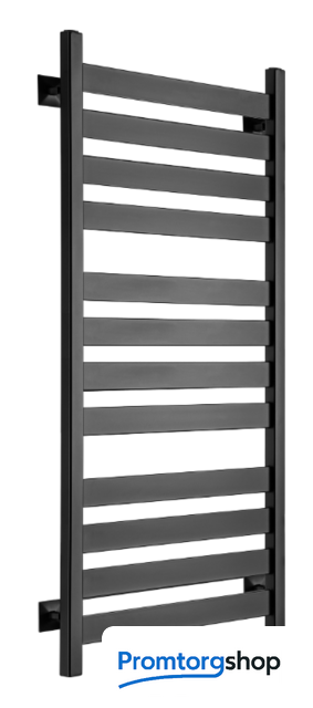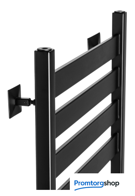 | Тип | водяной. Полотенцесушитель представляет собой лесенку из квадратной профильной трубы с перекладинами размером 50х10 мм, которые расположены группами. Данная модель окрашена черной матовой полимерной порошковой краской. |