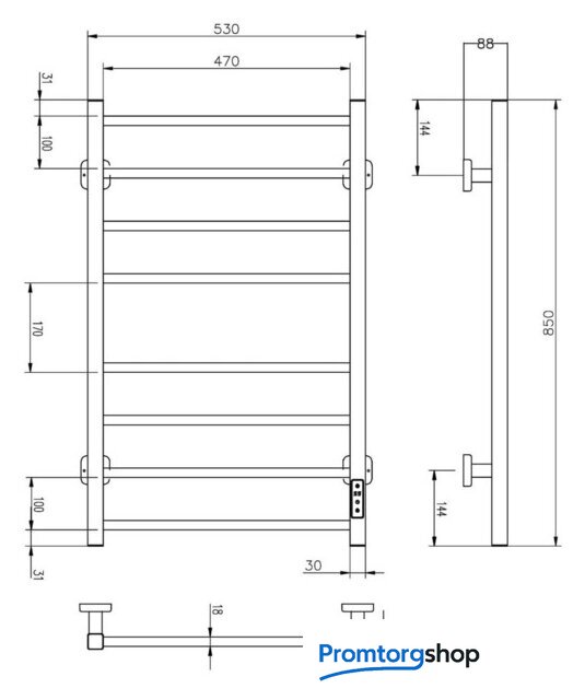 Комплектация | - полотенцесушитель;- крепления с отражателями 4 шт (6 см);- модуль скрытого подключения;- кабель;- паспорт;- гарантийный талон. |
