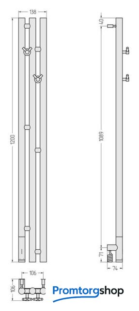 | Комплектация | ключ шестигранный, нагревательный ТЭН, саморез (3 шт.), кабель (1.5 м), дюбель (3 шт.), вешалка («Виктория»), блок управления, кронштейны телескопические |