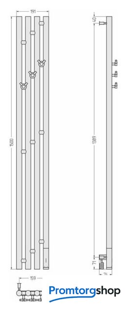 | Комплектация | ключ шестигранный, нагревательный ТЭН, саморез (3 шт.), кабель (1.5 м), дюбель (3 шт.), вешалка («Виктория»), блок управления, кронштейны телескопические |